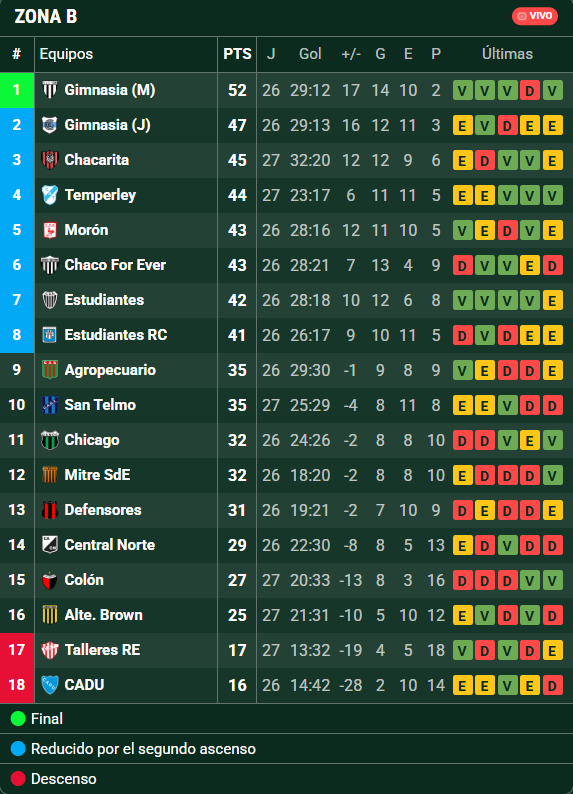 Así, a falta de siete fechas para el final, los dos que estarían descendiendo en la Zona B son CADU (16 puntos -debe su partido aún) y Talleres de Remedios de Escalada (17 puntos). Luego aparece Almirante Brown con 25 y Colón con 27.