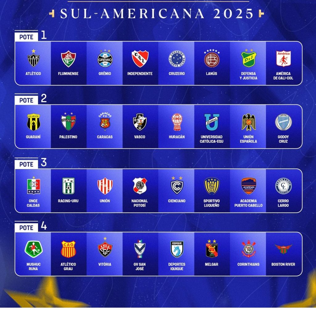 Mientras el Tate espera el partido del lunes a las 19 ante Banfield, Ya están confirmados los BOMBOS de la Copa Sudamericana 2025 en la que participará Unión de Santa Fe, que integrará el Bombo 4.