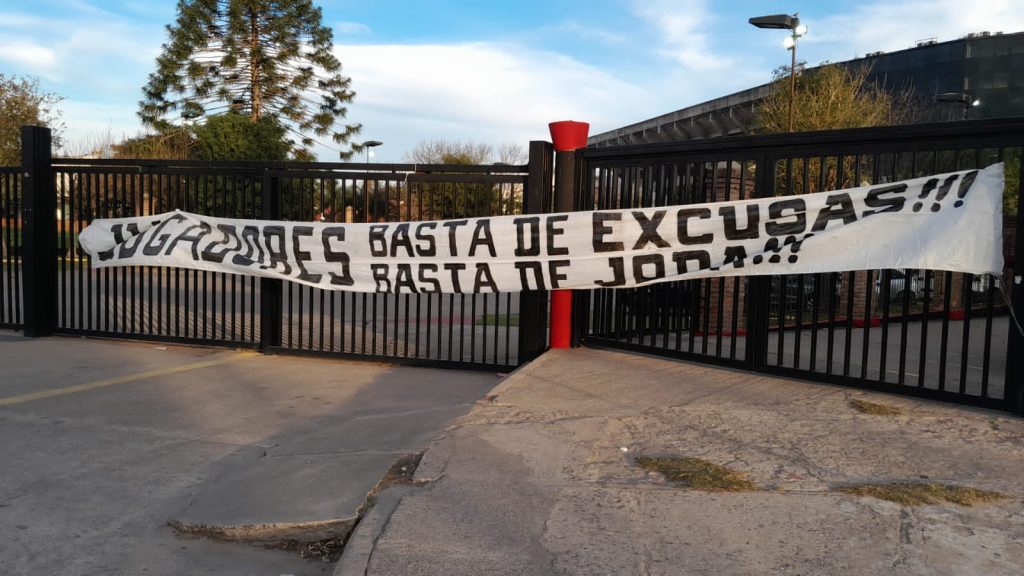 «Jugadores, basta de excusas y basta de joda», reza el cartel.