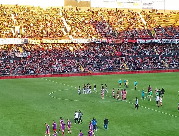 La visita salió a jugar decididamente en campo rojinegro y con sus limitaciones a cuestas, se arrimaba con peligro al arco de Marcos Díaz.