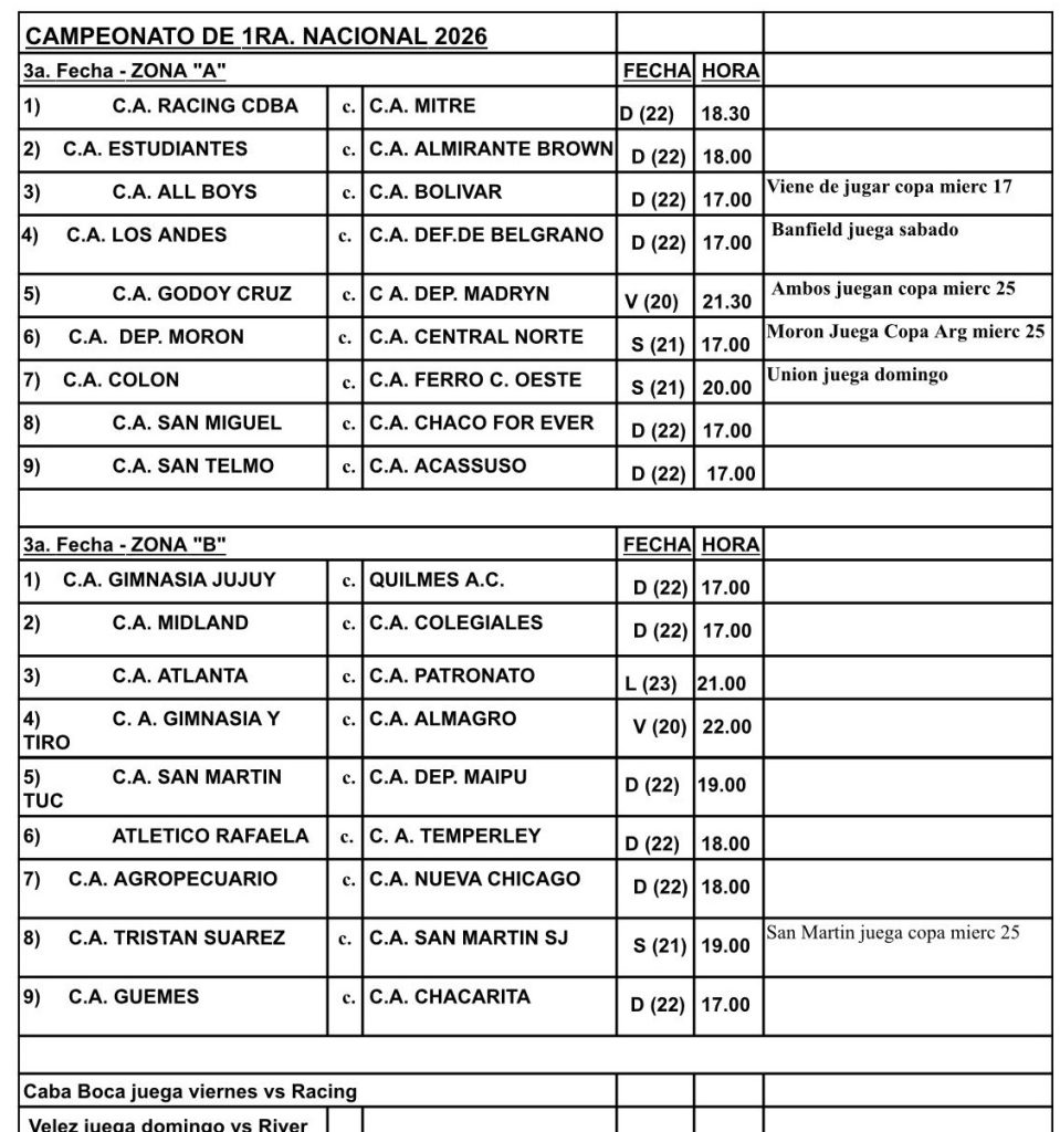 Mientras que hoy se confirmó que el duelo ante Ferro por la 3ra fecha será el sábado 21 a las 20 horas en Santa Fe