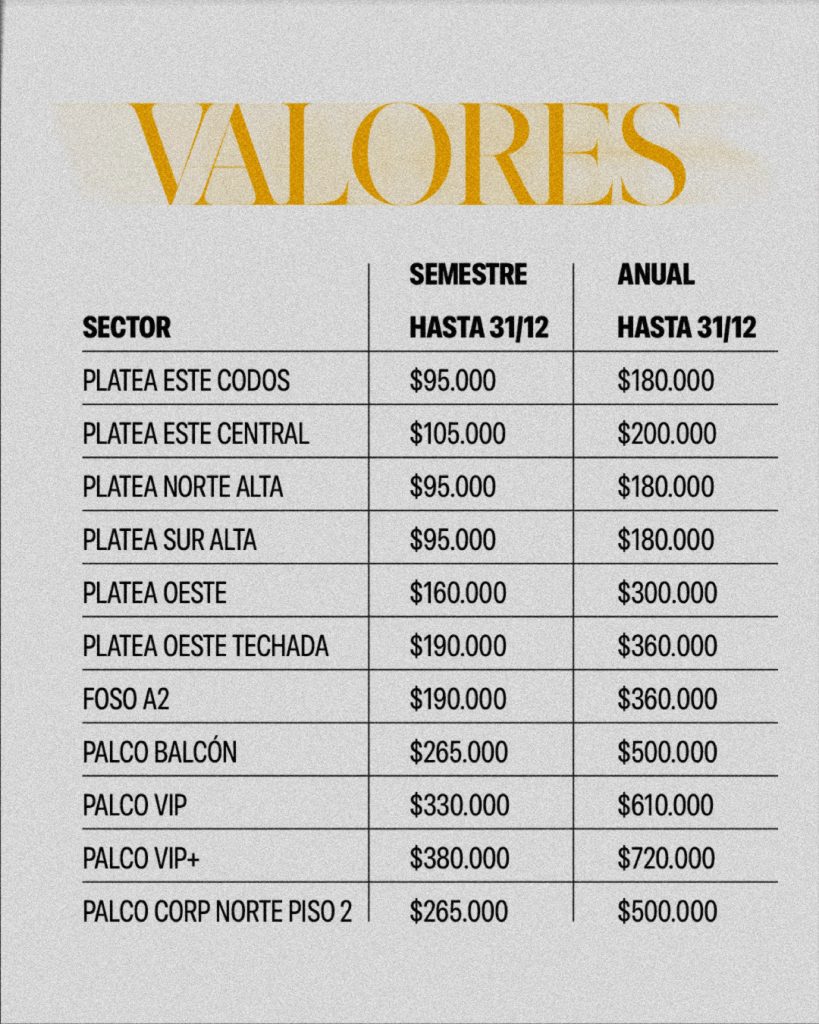 • A partir del 1/1/2026, los abonos tendrán una actualización del 10%, y un nuevo ajuste a partir del 1/2/2026.