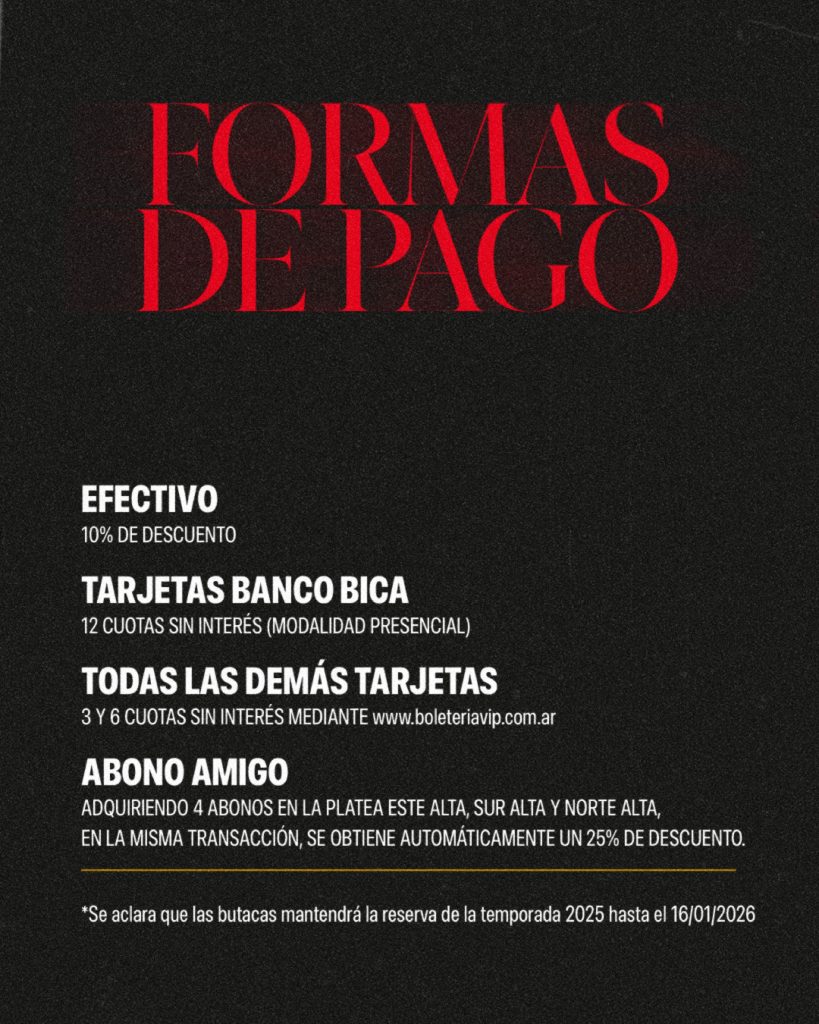 • Las butacas mantendrán la reserva de la temporada 2025 hasta el 16/01/2026.