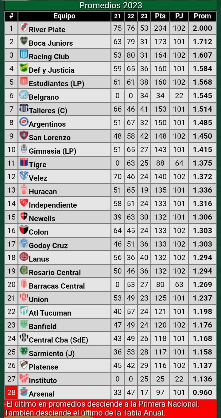 Jugada parcialmente la jornada 23 (tendrá intensa actividad hoy y también mañana), el Sabalero está en zona de riesgo en la tabla anual (quedan 4 fechas del actual certamen y la Copa de la LPF).