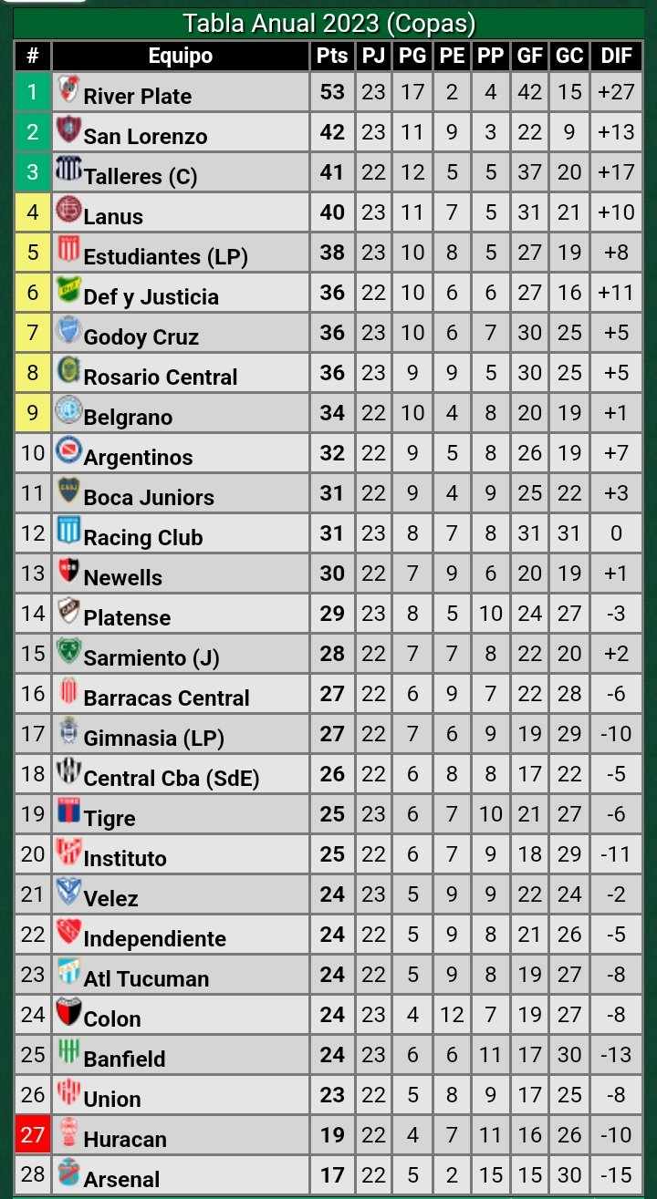 Pasó con derrota la fecha 23 para Colón, que cayó 2-0 ante River en el Monumental y así acumuló 3 partidos sin triunfos (1 empate y 2 derrotas en fila), al tiempo que se desluce la campaña al conseguir un solo triunfo en sus últimas 8 presentaciones.