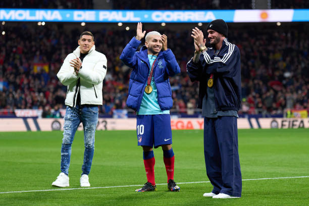 De los tres campeones, sólo Ángel Correa fue convocado para el partido del jueves. El ex San Lorenzo formó parte del banco de suplentes elegido por el Cholo, mientras que De Paul y Molina, que se entrenaron de manera diferenciada desde su llegada a España, no entraron en la convocatoria.