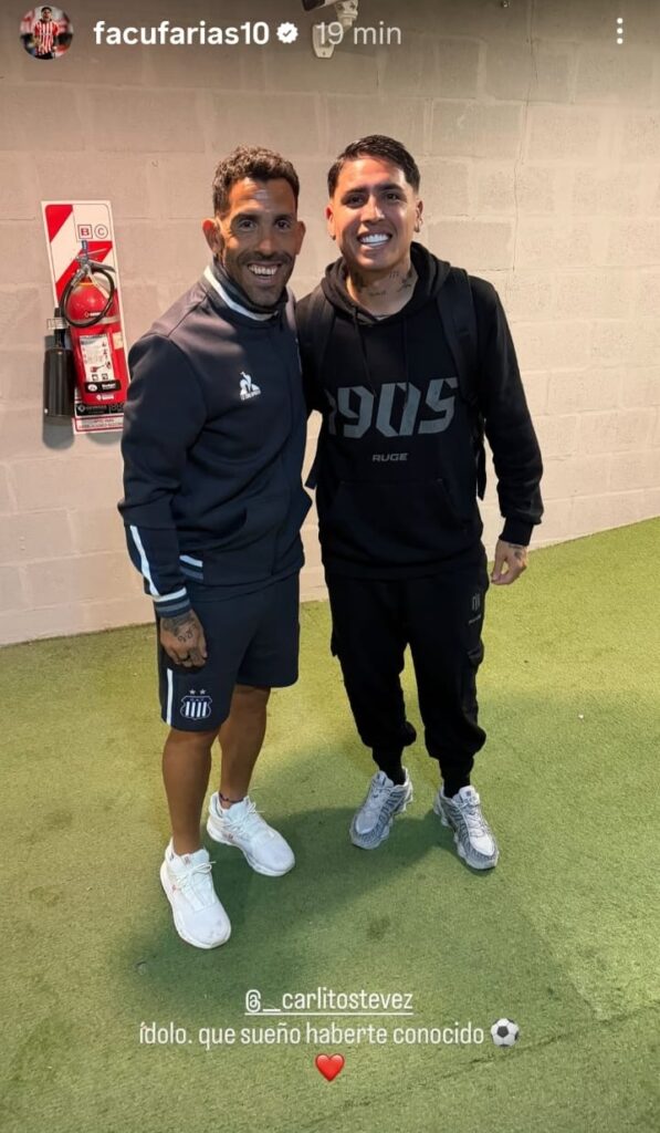 El ex jugador de Colón de Santa Fe, Facundo Farías, aprovechó el partido de su equipo, Estudiantes de La Plata ante Talleres de Córdoba, para sacarse una foto con su ídolo: el DT del elenco cordobés, Carlos Tevez.