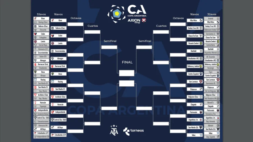 San Martín de San Juan vs. Vélez; Villa Mitre vs. Godoy Cruz; Baracas Central vs. Boca.