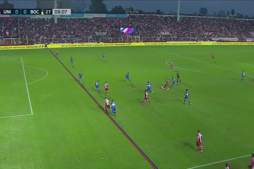 El 6 de julio del 2023 se cobró off-side de Corvalán en el gol de Unión a Boca: En esa oportunidad y en el mismo arco de la redonda, se habló de «trapecio y punto de fuga»