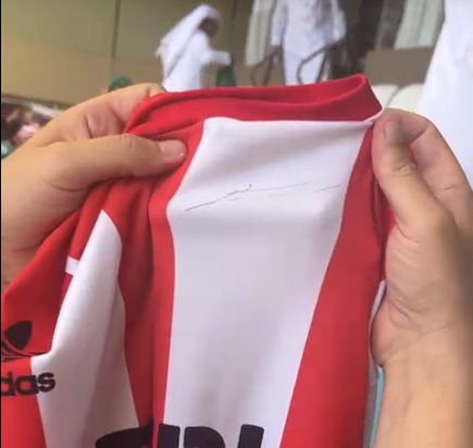 “Preguntamos y nos dijeron ‘the King’, no sabíamos the king de dónde, pero alguien importante era”, aseguró el joven y contó que comenzó a saludar al emir y que cuando cruzaron miradas le pidió que le firme la remera, a lo que Nasser Al-Khelaïfi aceptó.