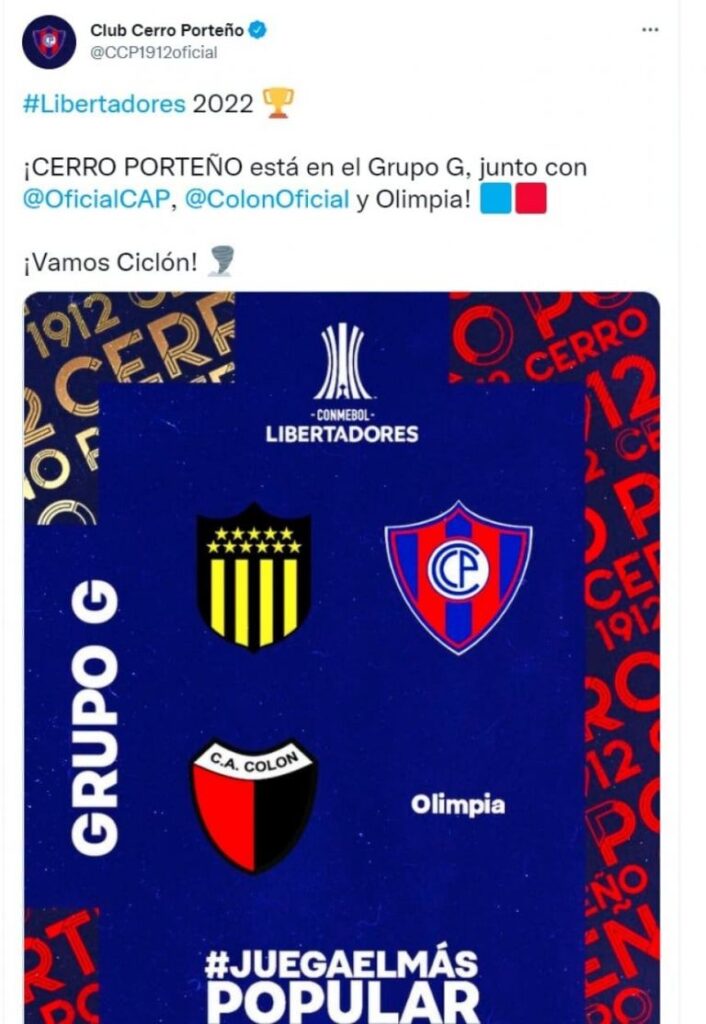 Colón de Santa Fe integrará un grupo muy caliente en la Copa Libertadores. Tendrá como rivales a Peñarol de Uruguay, y a los paraguayos Olimpia y Cerro Porteño, quienes animarán un clásico picante que ya empezó a jugarse por un desubicado posteo del equipo azulgrana en las redes sociales.