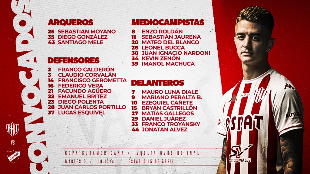 Unión, a través de sus redes sociales, dio a conocer la lista de concentrados para el partido de este martes, desde las 19.15, ante Nacional, por la revancha de los 8vos de final de la Copa Sudamericana.