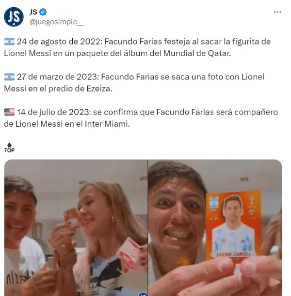 Facu, será compañero de Lionel Messi, el mismo Messi que hace tan solo un tiempo atrás lo volvía muy feliz cuando conseguía una figurita del Mundial de Qatar.