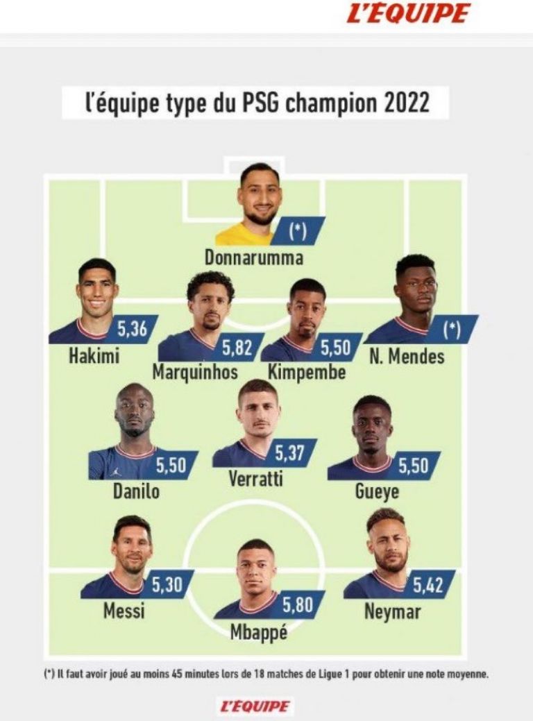 Para llegar a estas puntuaciones, L’Equipe tuvo en cuenta sólo a los futbolistas del Paris Saint Germain que completaron 45 minutos o más en 18 partidos de la liga local, por lo que no entraron en consideración otros jugadores muy criticados como Georginio Wijnaldum y Sergio Ramos, entre otros. La valoración adjudicada a Messi es llamativa ya que lideró la tabla de asistencias de Le Championnat con 13 pases gol, aunque ahora fue superado por su compañero Mbappé que lleva 14. Sin dudas, su baja cuota goleadora pudo influir en esta denominación del diario francés, ya que marcó cuatro tantos en 22 encuentros.