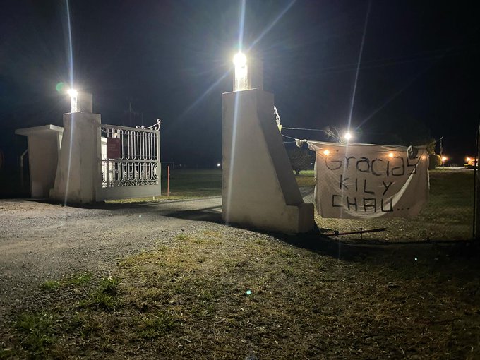 «Gracias Kily chau», se pudo leer en un trapo blanco con letras negras que fue retirado a las pocas horas, no sin antes ser fotografiado por gente que transitaba por el lugar.