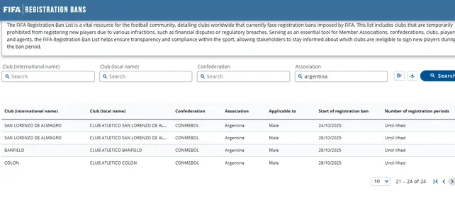 Lo que se venía avizorando respecto a la sanción que recibiría Colón, finalmente se concretó pasado el mediodía de este martes. Es que, en la actualización de su reporte semanal, la FIFA confirmó la inhibición de Colón para fichar en el próximo mercado de pases debido a la deuda que ostenta con Alberto Espínola.