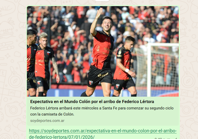 Toda la info actualizada la podés seguir en nuestro canal de whatsapp. Es simple, te podés sumar a través del link de ingreso. No es invasivo, porque no recibís notificaciones. Una vez que ingresaste al canal, tenés que ir a novedades dentro de tu whatsapp y allí vas a ver a SOY Deportes y los enlaces que tienen las informaciones que te interesan.
