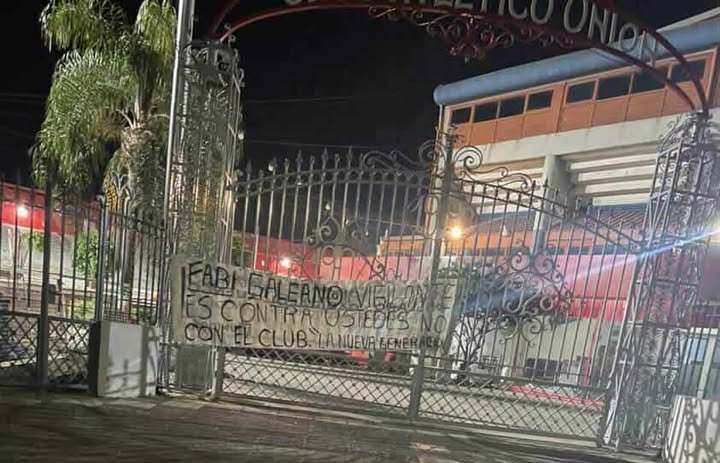 En horas de la madrugada de hoy apareció colgada en el «viejo portón» de ingreso al club Unión, una bandera que contenía un mensaje directo y amenazante: