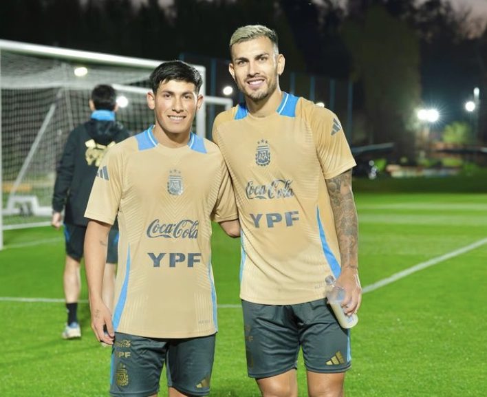 «SUEÑO CUMPLIDO», escribió el lateral en sus redes sociales junto a una foto con Paulo Dybala, otra con Leandro Paredes y otra con el resto del plantel de Lionel Scaloni.