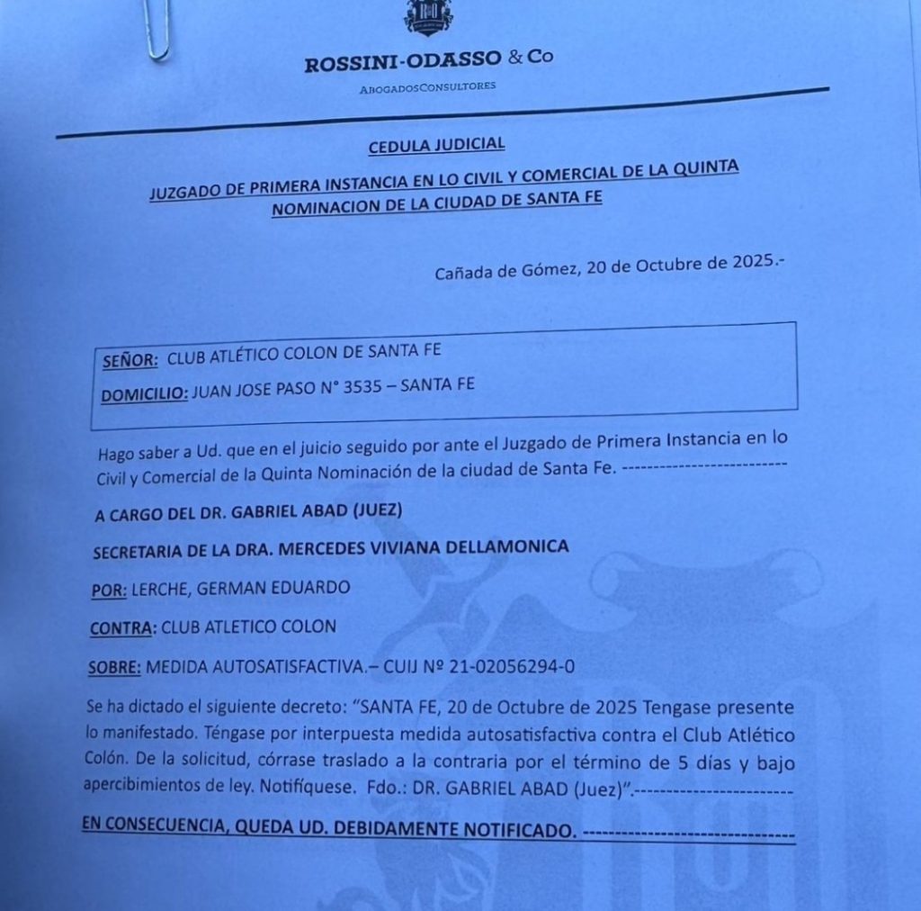 El Dr Lerche anunció en su cuenta de X que «Con una Medida Autosatisfactiva y con el patrocinio del Estudio Jurídico Rossini-Odasso & Co. inste en la Justicia Ordinaria para que el CLUB COLÓN me permita pagar las cuotas sociales y consecuentemente poder elegir y ser elegido y/o se remitan las causas de la proscripción».