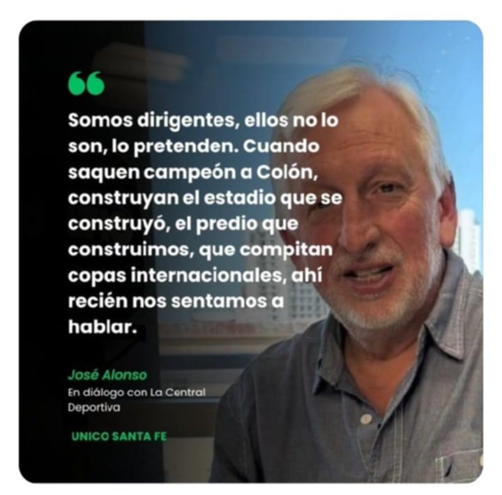 En su escrito en su cuenta de X (ex Twitter), Lerche posteó una foto en la que Alonso declaró: “Somos dirigentes, ellos no lo son, lo pretenden. Cuando saquen campeón a Colón, construyan el estadio que se construyó, el predio que construimos, que compitan copas internacionales, ahí recién nos sentamos a hablar”.