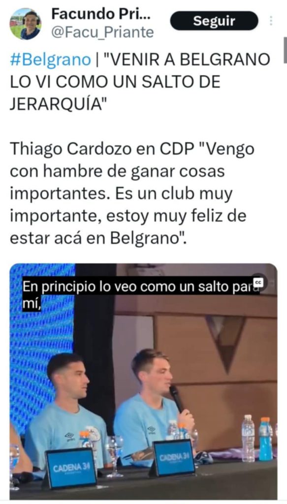 «Vengo con hambre de ganar cosas importantes. Es un club muy importante, estoy muy feliz de estar acá en Belgrano», dijo Cardozo y los Tates están en llamas.