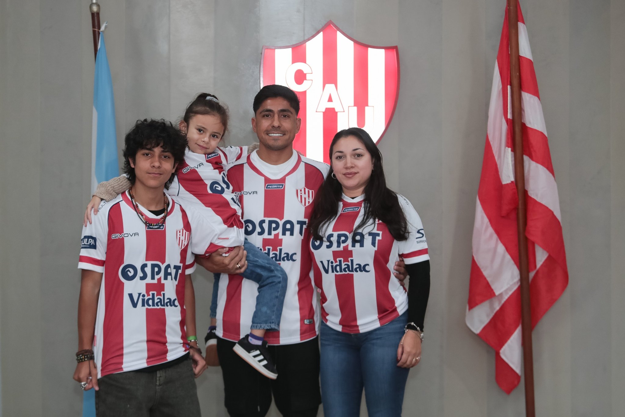 El goleador lució la roja y blanca de manera oficial por primera vez, pese a que por ser fanático la usa desde pibe; pero además posó acompañado de su círculo más intimo.