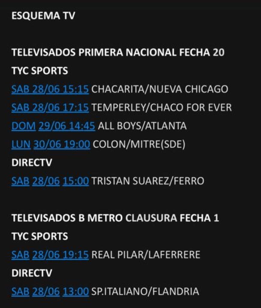 Además el cotejo de Colón ante los santiagueños se anuncia en la grilla de televisados de TyC Sports.