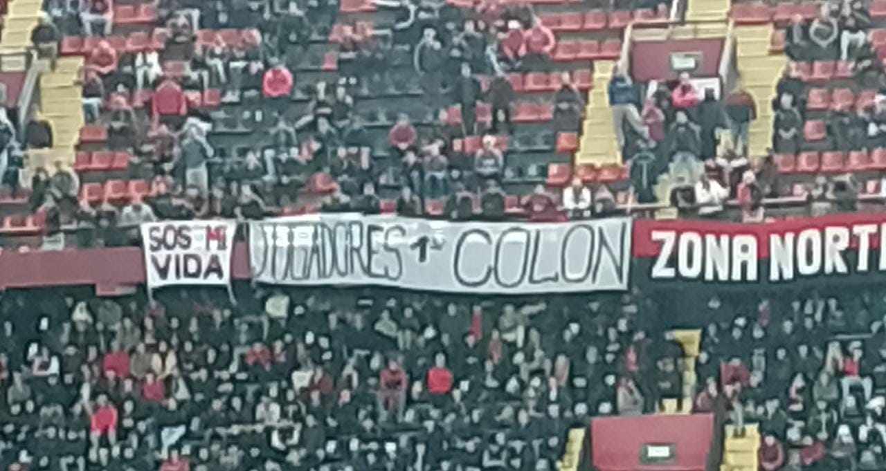 Desde el mismo comienzo del partido entre Colón y Tigre se pudo ver una bandera blanca con letras negras que decía: «Jugadores 1° Colón».