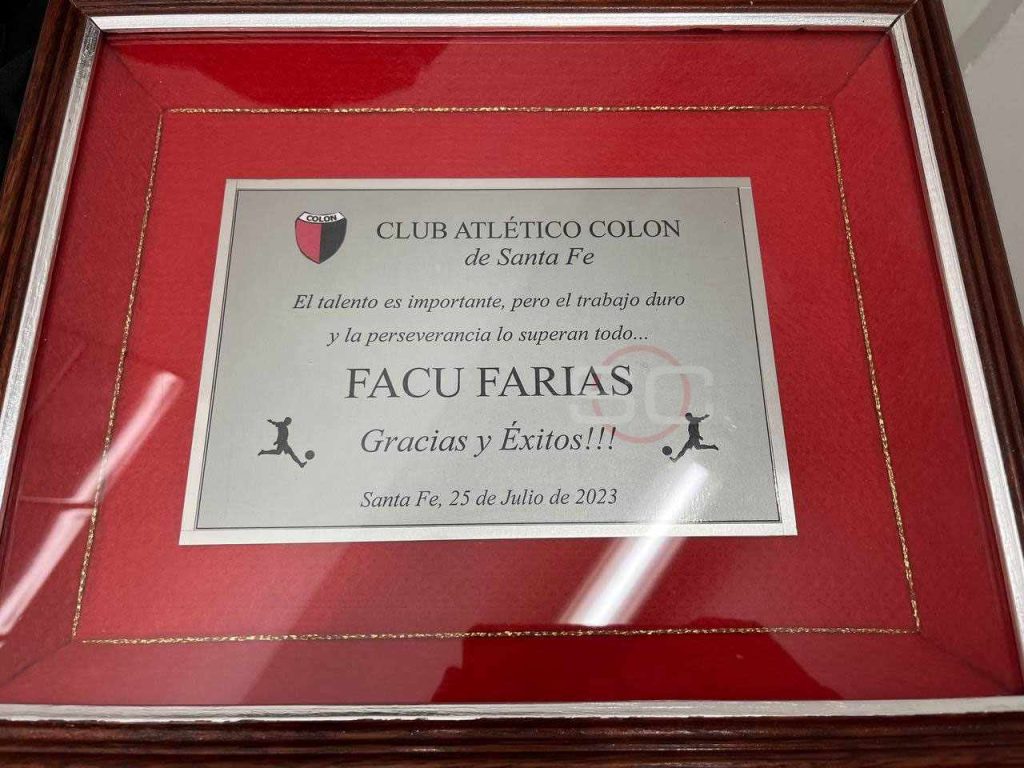 Antes del partido el club homenajeó con una plaqueta a Facundo Farías, quien pisó por última vez el estadio Brigadier López: «El talento es importante pero el trabajo duro y la perseverancia lo superan todo. FACU FARÍAS Gracias y éxitos»