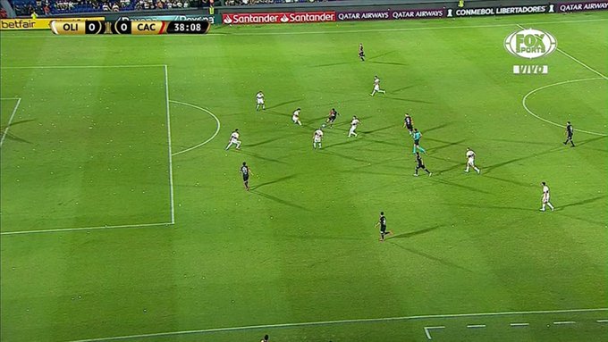 Con VAR era gol… pero en la primera fase de la Libertadores no hay “Video Assistant Referee”. se fueron al descanso igualando sin goles.