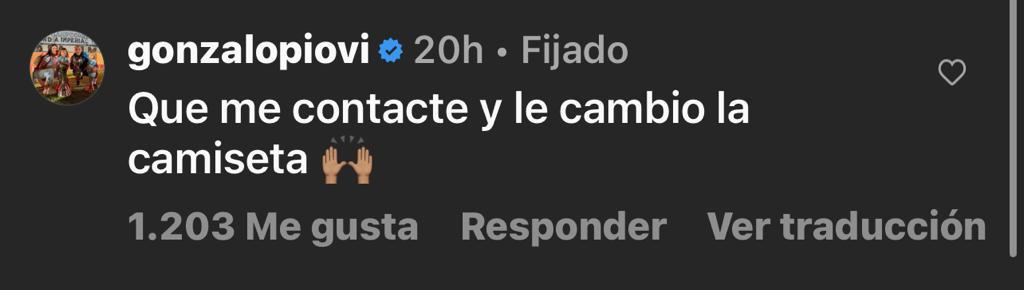 El jugador respondió en Instagram. «Que me contacte y le cambio la camiseta». Así que, se convertirá en una historia con final feliz.