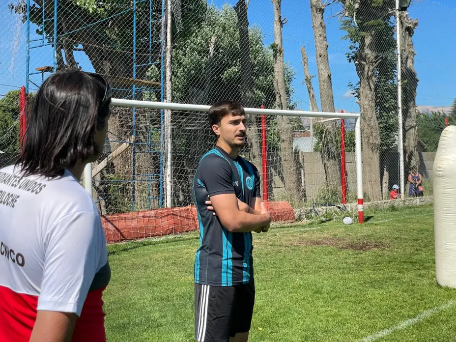 El arquero de Unión de Santa Fe hasta el último partido oficial del Tate en el 2025, Matías Tagliamonte, realiza una clínica deportiva en el Club Estudiantes Unidos de Bariloche.