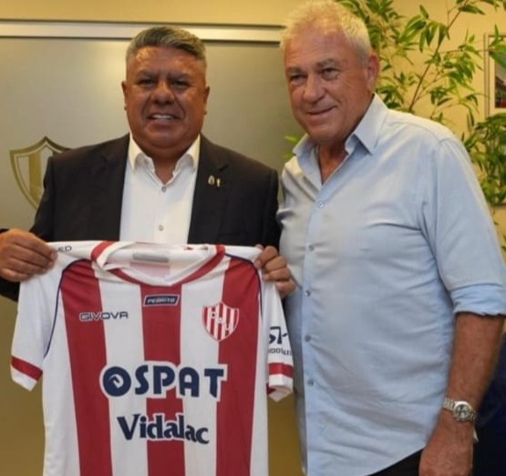 Más allá de observar el partido que definió la Supercopa Internacional entre Talleres y River, hubo un momento en el cual el santafesino campeón del mundo en 1986 les acercó un obsequio muy particular a los dos directivos: una camiseta de Unión, de la marca Gigova, a cada uno.
