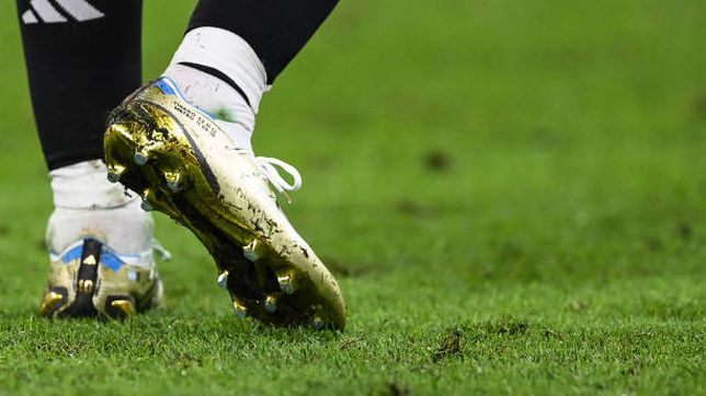 El astro argentino luce unos botines de la marca que lo patrocina, con un tono de color dorado brillante en casi toda la superficie, reflejando detalles de color albiceleste en la parte más alta, y una serie de serigrafiados negros.