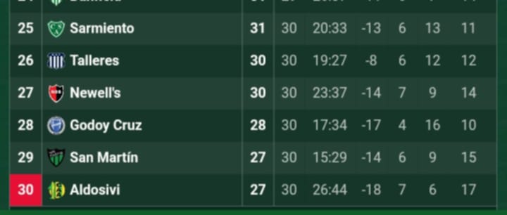 Hoy, los dos, Aldosivi y San Martín son los más comprometidos también en esta tabla, de la que podrían zafar sumando más que otros clubes, como Godoy Cruz, Sarmiento, Newell’s y Talleres, entre otros.