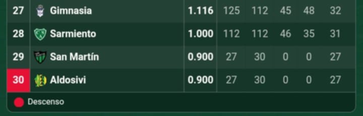 Si San Martín y Aldosivi sacan 4, producto de un triunfo para cada uno en la penúltima y un empate entre ellos, quedarían en 0,968.