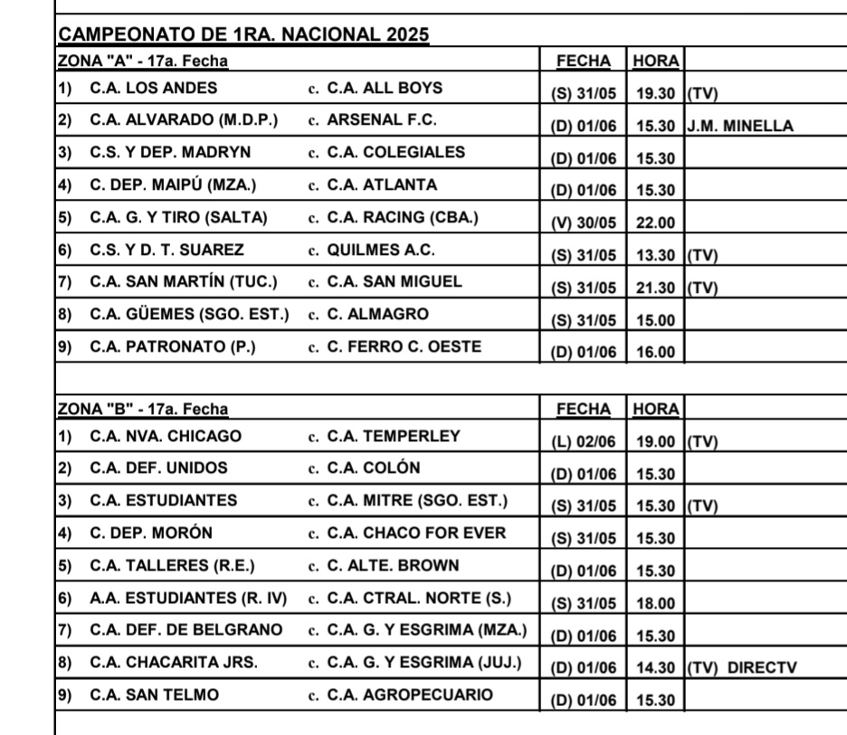Este lunes se confirmaron días, horarios y televisados de la última fecha de la primera ronda de la Primera Nacional.