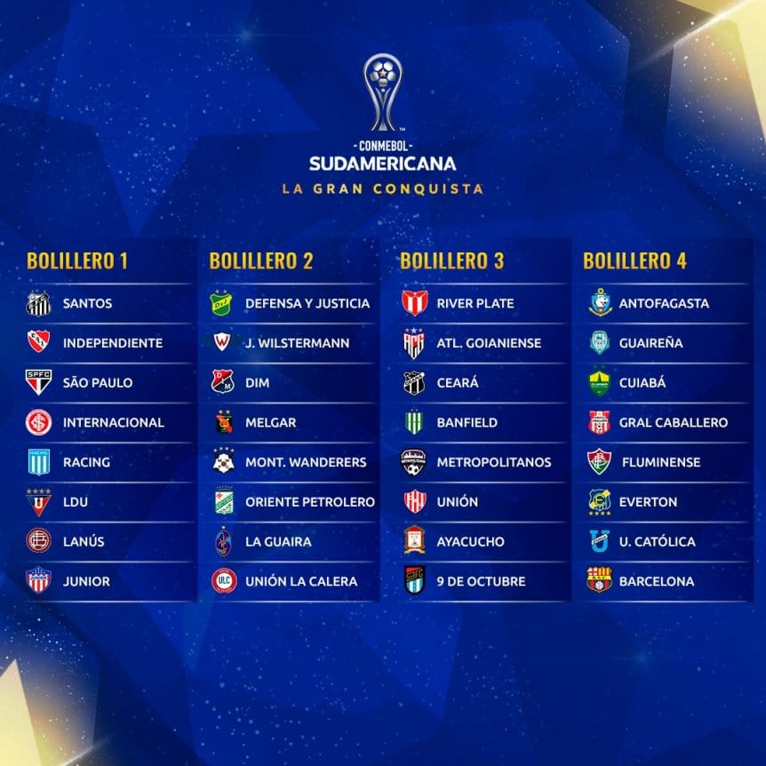 - Bombo 3: River Plate, Atlético Goianiense, Ceará, Banfield, Metropolitanos, Unión, Ayacucho y 9 de octubre.