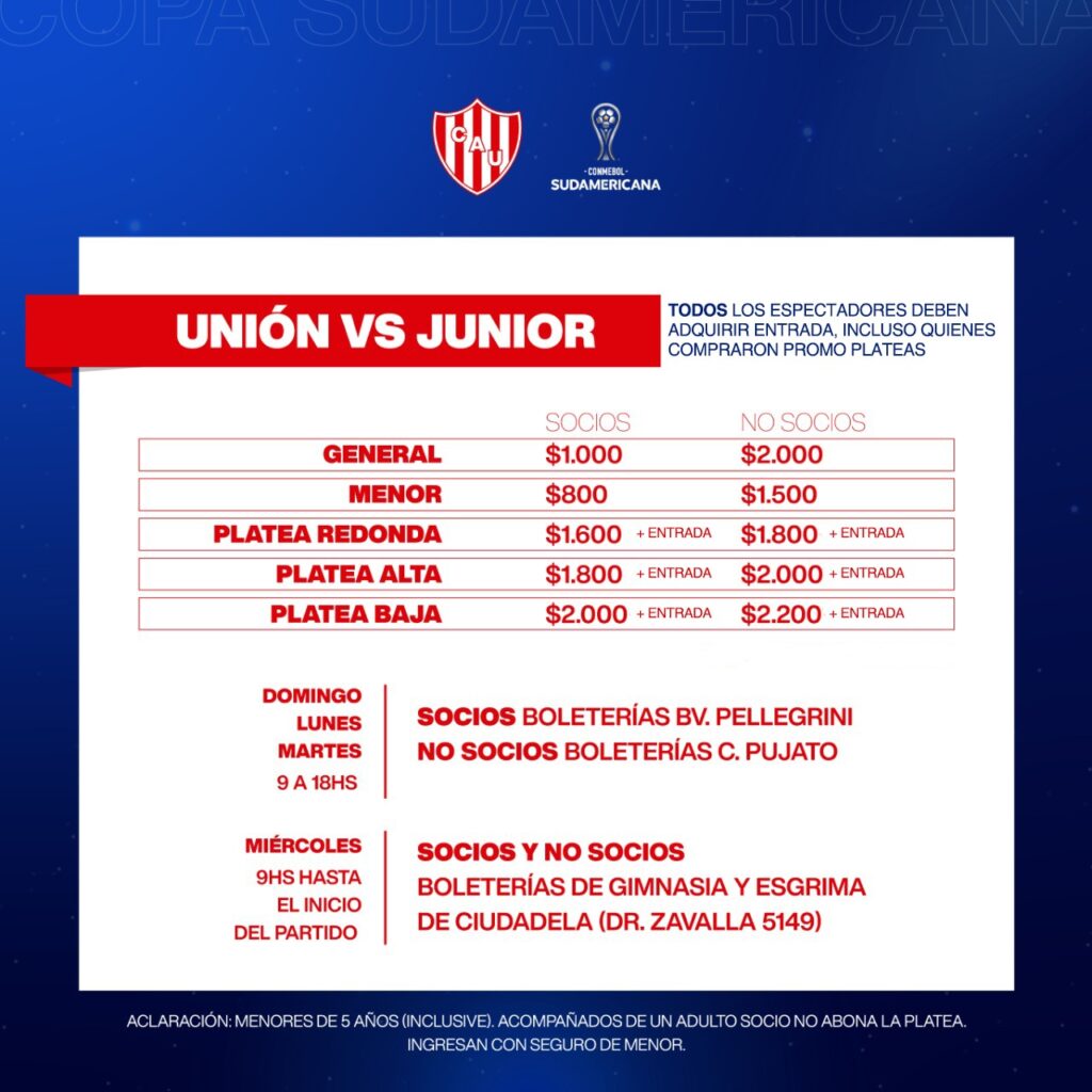 A través de un comunicado, Unión confirmó que tanto socios como no socios deberán adquirir su entrada para asistir al debut en Copa Sudamericana ante Junior.