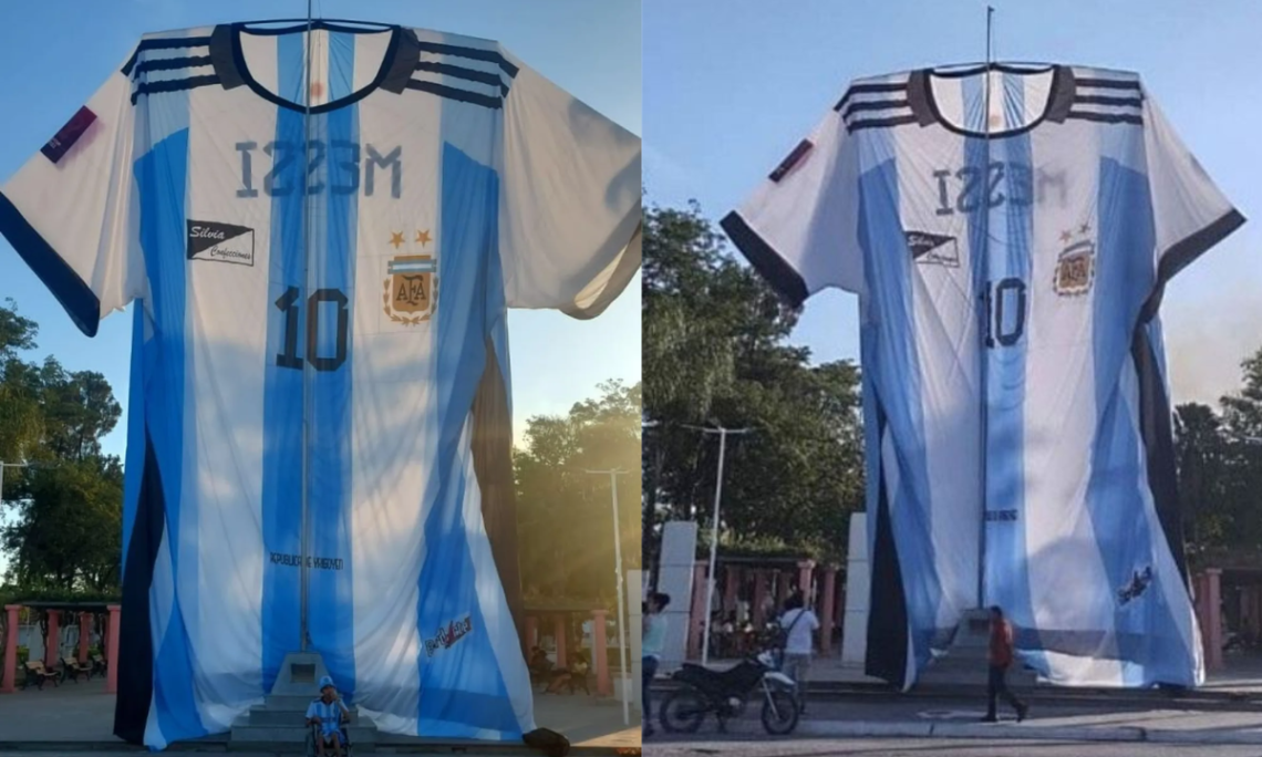 Argentina es única en el mundo. Una familia salteña creó la camiseta argentina más grande del mundo y la izó en el mástil de la plaza del pueblo. La camiseta lleva el número 10 y el nombre de Lionel Messi. Mide 15 metros de largo y 15 metros de ancho.