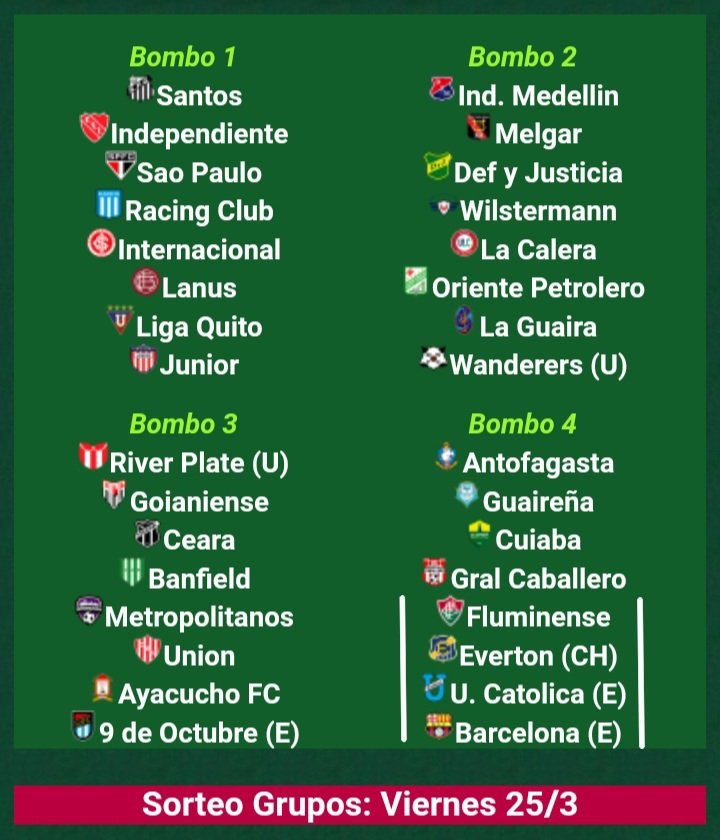 Además, también se suman los cuatro eliminados en la Fase 3 de la Copa Libetadores: Fluminense, Everton (que perdió ante Estudiantes), Barcelona de Guayaquil y Universidad Católica de Ecuador (que este jueves quedó afuera ante The Strongest de Bolivia).