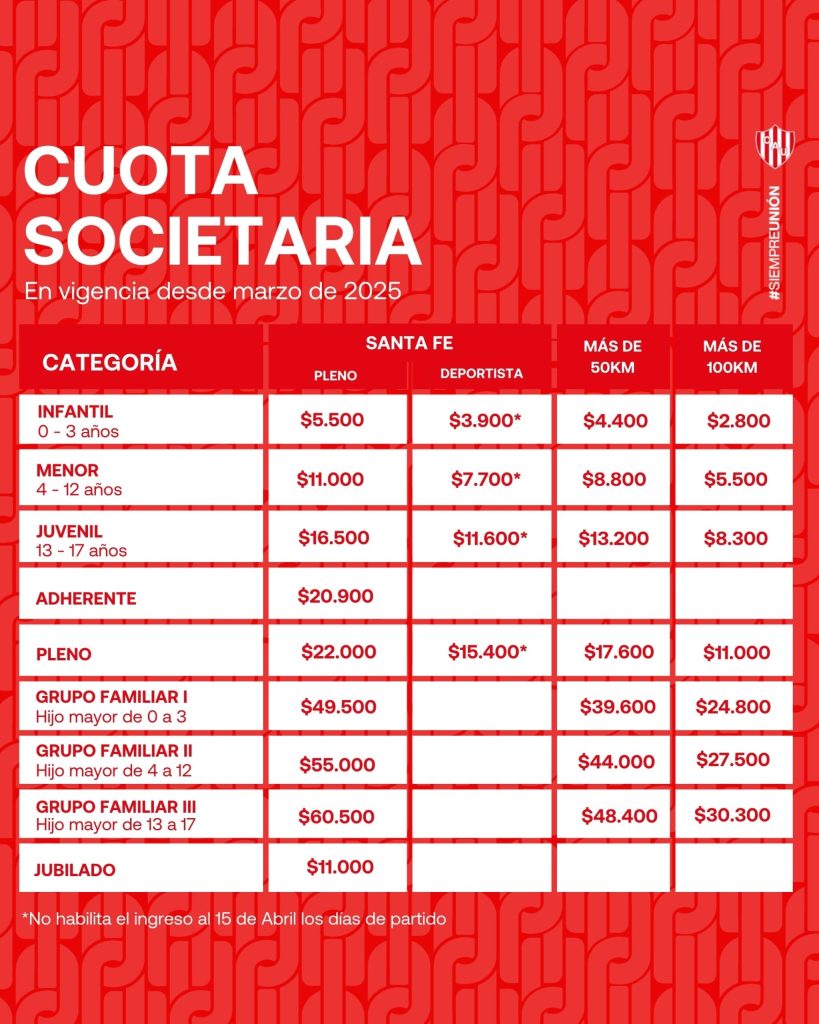Desde marzo, la cuota societaria de Unión sufrirá un incremento. Desde el club informaron los nuevos valores.